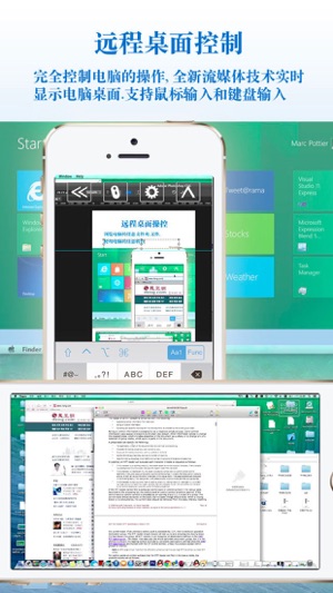 在iPhone和iPad上远程控制Windows和Mac系统! 远程桌面大师是从 iPhone,iPad访问电脑系统最方便的App.全新支持Windows 10和macOS 10.13 High Sierra系统 独家支持双模远程控制方式,既流媒体远程桌面和VNC远程桌面,您可以选择更高效的流媒体远程控制,或者是不需要再安装电脑客户端的标准VNC连接方式,并支持多电脑平台,包括Windows,Mac,Linux,Unix 让您通过本地网络查看和编辑Word,Excel,PPT文档和PDF文档.用浏览器来浏览网页,玩3D电脑游戏,或者远程文件管理器.把您的电脑放在口袋中! 软件功能:…