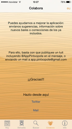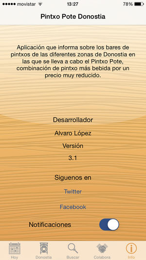 Con esta aplicación puedes conocer los bares de los diferentes barrios de la ciudad de Donostia que hacen Pintxo Pote. Tendrás información actualizada de los bares y restaurantes indicando el día, la hora y el precio.