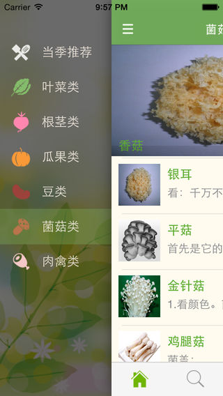 农药残留、催熟剂、重金属超标、菌群超标、变质……超市、菜场里的菜琳琅满目,看起来鲜明迷人,但实际上情况呢? 超市的蔬菜够不够新鲜,菜场的是不是能放心,地摊菜靠不靠谱? 我们这一代人,可能会胜任任何工作,完成种种困难,但却对最基础的生活常识严重缺少认知,就比如买菜,常常会依据蔬菜的价格和样子来评判好坏,其实这并不科学。 食品问题频频发生,怎样才能选购到我们放心菜,关键时候就得靠自己,学习买菜技巧,练就火眼一双火眼金睛! 功能介绍: 1.蔬菜分类 六大分类,100多种蔬菜,常见蔬菜一网打尽,总有您需要的品种。 2.选购攻略 详细的选购介绍,什么症状不能选,什么情况值得推荐,绝对让您挑到放心菜。 3.一键搜索 独立出来内部搜索功能,支持模糊搜索、拼音搜索,一键搜索、方便快捷。 4.摇一摇 贴心的摇一摇功能,想不到买什么,摇一摇就知道了,可以选择蔬菜分类摇一摇,帮您推荐买什么。 5.备忘记帐 每天买了哪些菜,花了多少钱,按照日期分类,清晰明了。 6.价格曲线图 自动统计显示蔬菜价格曲线图,直观的显示价格波动图,让您知道买的贵不贵。