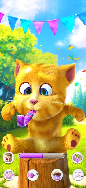 到生日快乐时间啦! 会说话的金杰,最可爱的小猫,正在长大而且想要你和他一同庆祝生日。 :-) 和他一起参加一个最棒的派对吧——有好吃的食物还有各种游戏!是的,你被邀请与这只全世界最可爱的小猫一起出去玩! 特色: - 与金杰对话:对他说话,他会用他那可爱的声音重复你说过的话。 - 和金杰一起玩:抱抱、挠挠或者捅捅金杰,看看他搞笑的反应。 - 和金杰一起吃东西:喂他东西吃或者按下专用的“吃饭时间”按钮和他一起吃饭。 - 为金杰录像:录制金杰玩乐的视频并和你的朋友们一起分享。 - 和金杰一起庆祝:吹响派对哨子,时间越长越好。 - 玩迷你游戏:看看计时结束之前你能吹灭多少生日蜡烛。 - 赢得免费…