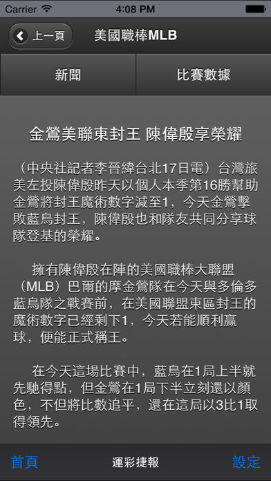 描述 產品特色 ______________________________________ 「運彩捷報」App簡介: 「運彩捷報」以文字轉播方式,第一時間完整呈現球迷最關心體育休閒情報,球迷可即時掌握當季NBA、SBL、職業足球最即時比數,除此之外,我們還提供新聞分析報導、發燒球星資訊、戰績排名、賽程預覽,讓您一手掌握所有資訊,完全不漏接! 資費說明 1、本 app 採用 Auto-renewal Subscriptions (自動續訂) 計費,每月收費新台幣30元。訂閱期滿前24小時若不退訂,系統會自動視為續訂,敬請用戶留意。 2、在訂閱期滿前24小時以前,用戶若想退訂,請點擊iPad/iPhone螢幕上「App Store」圖案,開啓「App Store–精選項目」頁面後,再點擊頁面底部「Apple ID」,螢幕會彈出Apple ID視窗,請點擊「檢視Apple ID」選項後,出現「帳號」頁面。請點擊「訂閱項目–管理」項目後,就可以進行退訂事宜。 3、在有效的訂閱期限內,您無法取消該訂閱服務,但可選擇不再續訂。 4、隱私條款,請見 http://appweb.cna.com.tw/SportLiveGoWeb/privacypolicy.html。 回復 當您訂閱後,在同一個Apple ID帳號下,按下「回復訂閱」按鈕即可在不同載具瀏覽本App內容。另您的載具系統重新安裝或自動續訂時,按下「回復訂閱」按鈕後,可持續瀏覽內容。