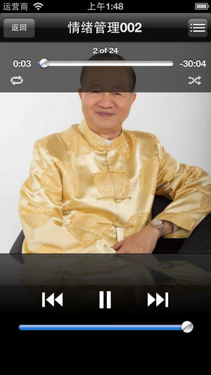 ====【曾仕强-情绪管理·有声经典】==== 《曾仕强-情绪管理·有声经典》全集,限价6元,同时支持iphone和ipad。 支持后台播放。 支持定时播放。 增加记忆功能,可以继续收听上次关闭时的记录。 =====内容介绍===== 你不要讨好任何人,更不要得罪任何一个人,你得罪不起的! 自律,自己管自己,不要让别人管你,你就没有压力,就容易改进自己。 把应该、必须,升高到一定程度,你就痛苦不堪。 聪明的小孩是很难教的,你教会了他,他就很难孝顺你。 千金难买回头一望。回头看一看,我这样做了,会怎么样?稍微缓一下并不耽误什么事,不要急。 人是习惯的动物,人生活在一连串的习惯当中。改变我们的习惯…