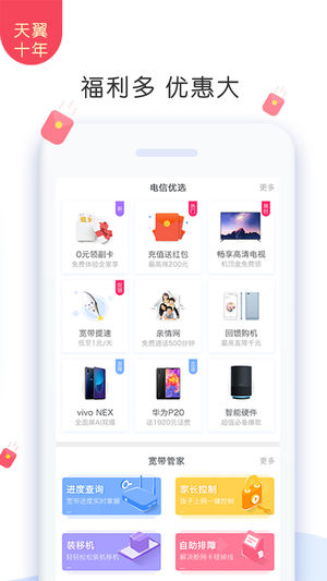 【应用简介】 天翼十年感谢有你,未来十年我们继续竭诚为你服务。 江苏电信自主推出的手机电信营业厅-天翼生活,为电信用户提供账单查询、话费充值、流量查询充值、宽带办理、积分兑换等服务功能,让江苏电信用户随时随地享受服务和优惠活动。 全新版本,丰富功能,只为给您更优质、更便捷、更贴心的服务! 【功能特性】 - 账号套餐查询:实时话费、流量明细、历史账单、积分兑换、套餐余额、已订业务、个人信息等查询, 让您一目了然,心中有数; - 流量实时管理:精准的流量统计、使用明细、流量预警和流量充值,实时管理流量情况; - 快速充值交费:支持手机、固话、宽带快速充值续约; - 专业…