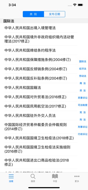 收录了1000多部中华人民共和国法律法规,全部免费开放浏览!便捷的分类浏览操作,快速索引定位,全文搜索,书签收藏! 如果您发现有未及时更新的条款或者文本错误,请随时联系我们进行反馈,我们会保持更新,谢谢。 软件特色: 1. 法律法规详细分类,一键查找 2. 全文检索,标题与章节检索 3. 快速索引定位 4. 升级功能后可一键复制相关条款,并发送给指定邮箱 适合法律专业者随身查找使用,比如律师,法律学者,法律专业学生,公务员考试等。 Chinese Laws 法律大类一览: 国际法、行政及行政诉讼、经济法、民法、民事诉讼及仲裁、商法、司法制度及法职、宪法、刑法、刑事诉讼 细分类别众多,…