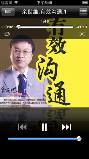 ====【余世维-有效沟通-有声经典】==== 《余世维-有效沟通-有声经典》全集,限价6元,同时支持iphone和ipad。 支持定时播放。 支持后台播放。 增加记忆功能,可以继续收听上次关闭时的记录。 ====【内容介绍】==== 美国诺瓦大学公共决策博士 哈佛大学企业管理博士后研究 牛津大学国际经济博士后研究 余世维被誉为“中国管理教育第一人”; 国人最为推崇的实战型培训专家之一: 演说家的风采,战略家的气度,理论家的才华; 2005年度他再次荣获“中国企业十大最具魅力培训师”、“中国企业十大最具魅力咨询师”称号,并被授予“2005年度杰出贡献奖”。2007年再次荣获“中国十大领导…