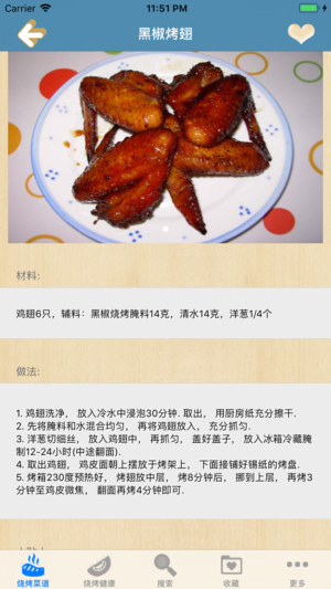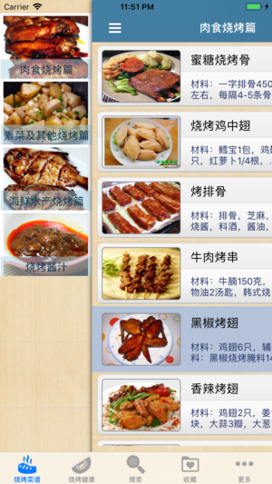 无广告,浏览速度快,不耗流量,不用上网也可以使用。 闪退已经问题解决,请大家放心使用。 烧烤大王详细介绍百余多款美味烧烤配方、配料、做法、特点,共分为肉食烧烤篇、素菜及其他烧烤篇、海鲜水产烧烤篇,及多种美味的酱料制作方法,并融入了健康烧烤DIY等方面,并用以消除吃烧烤的隐患。无论您是想烤一串美味给自己或家人朋友品尝,烧烤大全是您必备的烧烤宝典。