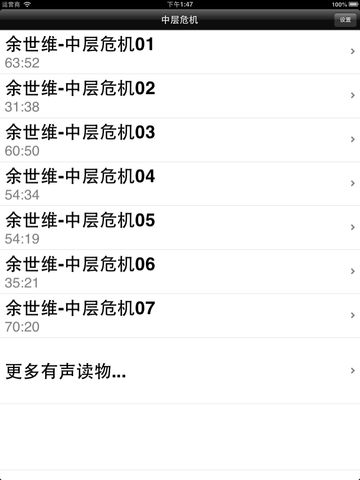====【余世维-中层危机-有声经典】==== 《余世维-中层危机-有声经典》全集,限价6元,同时支持iphone和ipad。 支持定时播放。 支持后台播放。 无任何广告插件。 增加记忆功能,可以继续收听上次关闭时的记录。 ====【内容介绍】==== 当人们习惯于将目光聚焦于企业高层时,却忽视了另一个重要群体——中层。事实上,中层的作用无可替代——他们既是企业决策的接收者,又是监督决策顺利实施的执行者。换句话说,没有中层,企业的任何英明决策都只是纸上谈兵! 中层发挥着怎样的作用? 如何从中层内部选拔人才? 如何培养中层? 在企业面临危机时,中层扮演着什么角色? 处于不同发展阶段的企业究竟需要怎样的中层? 余世维博士将为您揭开“中层”的重重迷雾。找到应对“中层危机”的金钥匙。