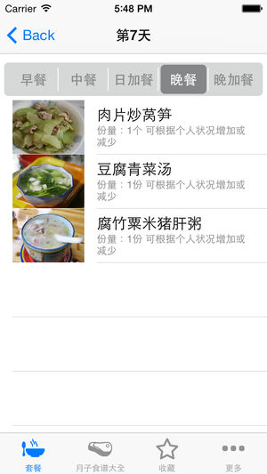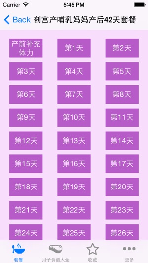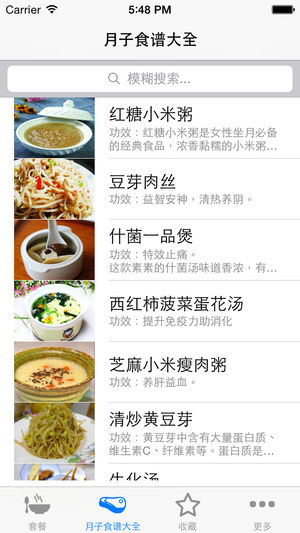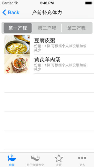 剖宫产哺乳妈妈产后42天套餐、顺产哺乳妈妈产后42天套餐、剖宫产非哺乳妈妈产后42天套餐、顺产非哺乳妈妈产后42天套餐,满足不同妈妈的需要。产后42天,天天不同,精选每日每餐食谱,让你不再为吃什么而发愁,让你不再为怎么吃而担忧。 共500道营养月子餐,让你轻轻松松坐月子,健健康康复元气!每一道菜都为妈妈们计算好了营养,而贴心的营养加油站,更是让新妈妈们舒心,因为这时候的健康体魄、丰富乳汁可是妈妈们对宝宝最重要的责任。 无广告,浏览速度快,不耗流量,离线本地浏览,不用上网也可以使用。