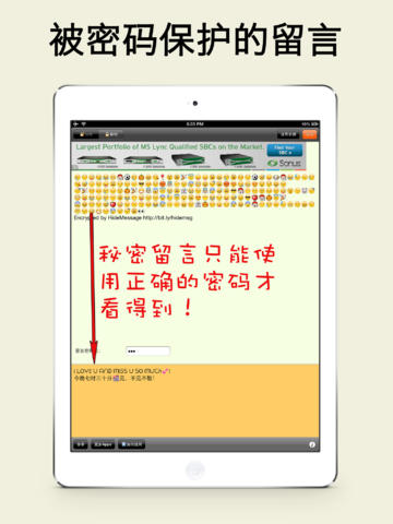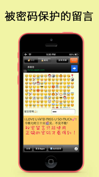 利用HideMessage 进行隐私聊天! 使用表情符号隐藏您的留言是保护您的留言的最佳方式! 秘密传讯从未如此有趣- 和丰富多彩! 特点 ► 利用 HideMessage 进行隐私聊天。 ► 使用直观的应用程序加密和解密讯息。 ► 设置密码的讯息:只有您的收件人才能解密密意! ► 这是非常有趣和易于使用的,并高度保密! ► 能使用Twitter,Facebook,微信和您最喜爱的应用程序进行隐私聊天! 我们都使用表情符号,但你知道它们也可以是另一个讯息的绝密代码?有了HideMessage,您可以在几秒钟内简单的写一个加密讯息并发送它。这个聪明和易于使用的应用程序会将它转换成表情符号。一旦您的的朋友或家人知道如何解码留言,他们可以很容易地使用留言密码和HideMessage应用程序将其解密。 这个有趣的,直观的应用程序是非常适合于使用在您告诉别人的闲话,重要新闻,故事,笑话或简单的东西,使用在任何你想成为绝密的讯息。所有你必须做的只是键入你的消息,设置一个密码和共享- 就像123一样简单! 秘密传讯从未如此有趣- 和丰富多彩! 你终于可以信心十足地确保窥探的眼睛将无法了解您的讯息聊天!他们不会意识到,有趣的表情符号实际上是绝密的讯息!