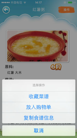 ^-^ 在此祝所有宝宝健康、快乐.... 宝宝有一个健康的身体,是父母最为关心的事。 从小的饮食均衡与宝宝的健康息息相关。怎样让宝宝不输在起跑线上?解决这个问题,我们从宝贝的饮食开始。 无论是新手妈妈,还是妈妈达人,相信都会为每天孩子的营养饮食而烦恼。我们全力为您解决喂养宝宝的问题,让宝宝的饮食变得科学合理,营养均衡。 【应用程序简介】 1.为妈妈们精心准备宝宝0~6岁健康饮食菜谱,全程贴心陪伴宝宝。 2.Ipad版本支持横竖屏模式,怎么方便怎么看。 3.支持食谱和食材搜索、关键字查询。 5.支持购物单菜谱收藏功能,方便您及时调出购物信息。 6.优美合理的布局界面,效率护眼。…