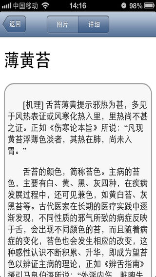 望舌知健康 舌诊,诊断学名词。为望诊重点内容之一。中医诊断疾病的重要客观指标。 舌为心之苗,脾之外候,苔由胃气所生。脏腑通过经脉与舌相联系,手少阴之别系舌本,足少阴之脉挟舌本,足厥阴之脉络舌本,足太阴之脉连舌本,散舌下,故脏腑病变,可在舌质和舌苔上反映出来,舌诊主要诊察舌质和舌苔的形态、色泽、润燥等,以此判断疾病的性质、病势的浅深、气血的盛衰、津液的盈亏及脏腑的虚实等。 望舌知健康主要包括望舌神、望舌色、望舌形、望舌态、望苔质、望苔色六大部分内容。 中医传统诊法认为,舌质与舌苔在反映病症方面各有侧重,一般来说,舌质多反映五脏精气的盛衰;舌苔多反映病邪的性质及病位的深浅。这是因为舌质的色泽形态主要是依靠五脏所化生的精气上容以维持,故五脏精气的盛衰也就主要表现在舌质上;舌苔由胃气上蒸而成,若体内有邪气,常与胃气相传结上蒸于舌面,表现为舌苔的异常,故舌苔更侧重于反映病邪的情况。由于中医发病学理论更重正气的盛衰,故相比较而言,中医望舌更重舌质的变化。对此,清代医家周学海在《形色外诊简摩》一书中明确指出:“苔无论何色,皆属易治,舌质即变,即当察其色之死活。”《诊家直觉》一书也有类似的论述:“凡察舌需分舌苔、舌质,舌苔虽恶,舌质如常,胃气秽浊而已。”当然,舌质与舌苔的变化并不是彼此孤立的,而是紧密联系的,故临证还要将它们的变化综合起来进行分析研究。 用视觉观察病人的舌质和舌苔的变化,以了解病情,推测预后的诊断方法。观察舌头的色泽、形态的变化来辅助诊断及鉴别的一个简单有效的方法。