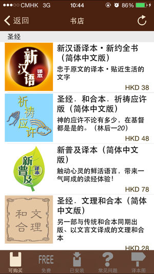 恢复购买记录: 请到“书店”中的“常用问题”的页面,画面右上角按“恢复购买记录”以重新下载已购买项目。 ____________________________ 感谢主,《汉语圣经App》荣获基督教出版联会第六届金书奖“电子书出版”奖!我们在此感谢大家一直以来的支持,盼望此APP能继续帮助大家在电子平台上“读圣经,认识神”! 汉语圣经协会隆重呈献! 一个集多个圣经版本、圣经词典、圣经地图、研读附注、灵修材料、聆听材料、神学研究书籍、读经计划等功能于一身的APP,让您自由配搭各项圣经译本、字典及属灵材料、圣经译本之间能互相对照、各项材料亦能彼此连结。操作方面也尽量达至人性化,使读者有舒适…