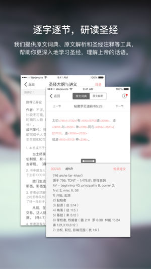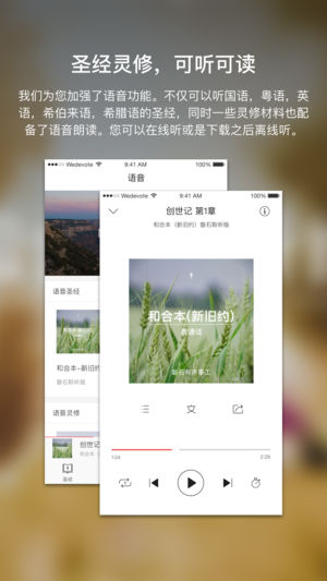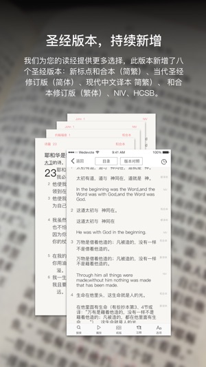秉承精品和正版的理念,微读圣经为您提供丰富的多语种圣经版本,以及高质量的灵修材料。希望能帮助您更好地阅读、查考、默想、聆听、研读上帝的话语,并养成每日执行读经计划的好习惯。结合云端存储功能,您还可以随时记录对某段经文的感想及笔记,并同步到您使用的各种设备中。微读圣经主要特色如下: 1. 精致排版 简洁精致的排版,力求还原纸版圣经的段落、人名地名下划线、诗歌体、加点字、小标题等效果。 2. 正版授权 我们尊重版权,为您提供高质量内容的同时,我们也保护版权方的权利,促进文字事工健康发展。您在微读圣经中使用的所有内容,皆获得了内容版权方的正版授权。 3. 圣经版本,持续新增 我们为您的读经提供…