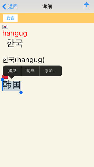 专为iPhone/iPod Touch设计的韩中词典App. • 支持中文/韩文查询,支持韩文手写输入。 • 词库备有16万单词。 • 支持书签功能。 • 不需要联网。 This is a Korean-Chinese dictionary app. • Support Korean handwriting input. • Including more than 160,000 Korean words . Each words shows reading, meaning. • Support bookmarks . • No internet connection requ…
