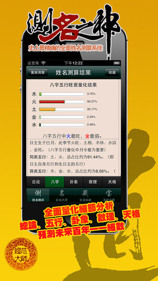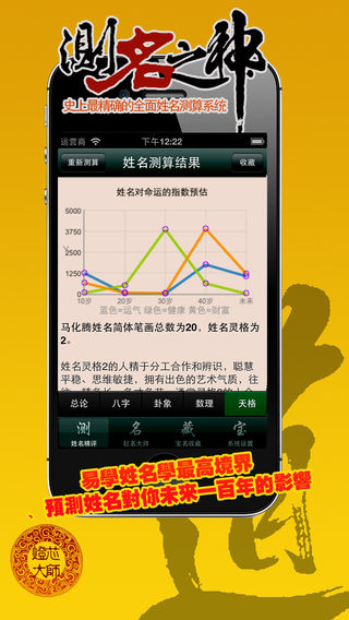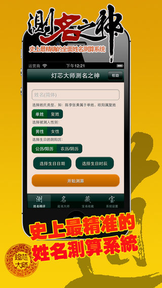 灯芯大师测名之神是当今最权威的测名系统,集合五十位国内外周易和姓名学大师共同炼制的新式姓名测算系统。所谓名成才能利就“,人生的起跑线不是早教,而是姓名,一个人的姓名对未来影响,相当重要。 测名之神可以让父母在为宝宝取名的时候作为重要的指导,也可以为成人改名起到重要的依据,与市面大量良莠不齐的姓名测算系统不同,测名之神不增不减,以最科学的手段结合中国最深奥的姓名学术,以3D饼图、曲线图、条状图等去分析,每个测算的姓名都提供总论、八字五行、卦象、数理、天格、灵格等去细致剖析,计算出得分,还有预测100年内这个姓名对你的健康、财富、运气的影响,从图表就可以看到这个姓名对你一辈子的影响。 测名之神增强版还提供三位姓名学大师顶级起名算法,供用家选择使用,而基础版没有起名功能。 灯芯大师测名之神一套价格超过千元,刚登陆苹果App Store,希望以一个结缘价格会友,所以欲购从速,测名之神,让你可以为宝宝取个好名,让你可以看看如何改掉自己不好的姓名,让你瞬间在朋友面前变成堪舆姓名学大师,让你在朋友面前获得权威尊重。