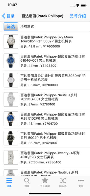 名表大全为广大腕表爱好者、消费者提供最大最最全面的腕表信息。 软件目前共收录70个品牌,近2万款手表, 从顶级奢华到时尚亲民等应有尽有, 后续还会持续补充内容和更新, 每款手表提供精美图片、详细参数等信息, 每个品牌都提供了详尽的品牌历史介绍, 同时软件提供强大的搜索功能以及便捷的浏览方式, 是不可多得的随身手表参考应用! 所有内容为离线浏览, 不需要消耗联网流量。