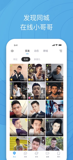 Blued,是一款倡导积极健康公益生活的直播互动应用和健康教育平台。 【在Blued,与他相遇】 每个孤独的人,都在寻找另一半。 有的人寻找精神上的同频共振, 有的人寻找空间上的形影不分, 有人寻找挚友,有人寻找爱人。 你和他,只差一场相遇的距离, 相遇,需要天时地利,以及不经意。 在Blued,有数千万帅哥陪着你, 关于他,也曾寻觅,终将相遇。 【产品介绍】 身边:查看附近的人和动态,发现近在咫尺的缘分; 直播:与颜值主播实时互动,和才艺达人连麦PK; 发现:浏览丰富有趣的图片和视频,参与圈内流行的话题; 公益:获取安全防护知识,快捷实现保密检测; 会员:专享隐身登录,无痕访问,个…