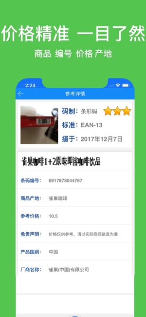 专业的条形码扫描工具,它可以轻松实现普通条形码扫描, 二维条形码(QR码)扫描识别。 1.简单操作,上手更快 启动软件以后, 软件就会自动启动摄像头, 只要用摄像头对准商品外包装上的条形码或二维码, 不需要任何操作即可自动识别并且给出查询的结果.轻松简单的操作, 适合各种不同的用户群体., 2.轻松识别二维码 支持各种二维码类型, 不仅支持我们常用的名片,网址,下载,视频的等二维码, 同时还支持京东商城,1号店 3.商品,书籍知价格 扫描商品,书籍,杂志的条码, 为您展示不同展示效果, 您不仅可以看到名称, 产地, 规格, 价格等, 还可以查看各大网店, 超市的价格, 并进行比价…