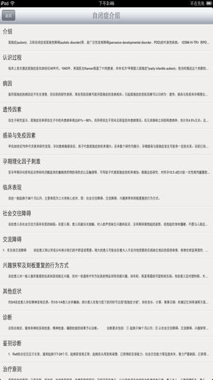 自闭症,又称孤独症(autism)或孤独性障碍(autistic disorder)等,是广泛性发育障碍(pervasive developmental disorder,PDD)的代表性疾病。《DSM-IV-TR》将PDD分为5种:孤独性障碍、Retts综合征、童年瓦解性障碍、Asperger综合征和未特定的PDD。其中,孤独性障碍与Asperger综合征较为常见。孤独症的患病率报道不一,一般认为约为儿童人口的2~5/万人,男女比例约为3:1~4:1,女孩症状一般较男孩严重。 本软件通过测试来帮助你早发现早治疗。