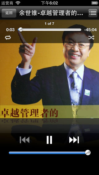 ====【余世维-卓越管理者的辅导与激励技巧】==== 《余世维-卓越管理者的辅导与激励技巧》全集,限价6元,同时支持iphone和ipad。 支持定时播放。 支持后台播放。 增加记忆功能,可以继续收听上次关闭时的记录。 ====【内容介绍】==== 《卓越管理者的辅导与激励技巧》里,用生动典型的实例和诙谐幽默的语言,帮助管理者打造自己的辅导与激励模式,使之成为更优秀、更全面的企业管理人才。很多企业的管理者或许知道怎样去领导自己的员工,却忽略了管理者还肩负着辅导与激励员工的责任。那么,应该怎样去辅导员327怎样掌握辅导员工的技巧?对员工的激励又应该表现在哪些方面?