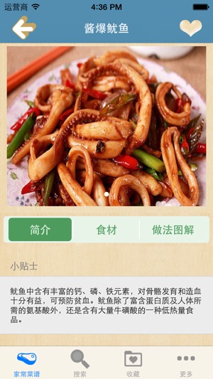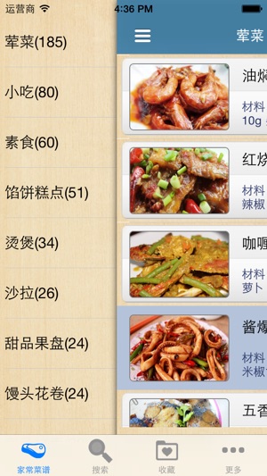 精选大众最爱吃的经典家常菜,精选了700多例一学就会做的家常菜,有荤菜、小吃、素食、馅饼、糕点、烫煲、沙拉、甜品、馒头花卷、包子烧卖、披萨汉堡、面条、饺子、馄饨、粥饭等 ,以通俗的文字教您怎样通过食物的巧妙搭配。制作出色、香、味俱佳的各种美味。详解每一道菜品的制作方法,每个步骤配有图片,有图有真相,操作成功100%. 离线浏览,不用联网也可以浏览,速度快,无广告。
