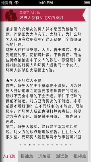 你马上就要学到的这些秘密,是绝大多数男人一辈子都不可能知道的,它们是关于女人以及如何吸引女人的。 我会教你如何让女人情不自禁的爱上你,而且这种爱的产生是她们完全无法控制的! 我用了几年时间去研究那些真正能够吸引到女人的高手,结果,我看到的和学到的东西,是我以前想都不敢想的。 这些东西不需要你有钱,也不需要你帅,也完全不需要你长得高…… 在我学到这些东西以后,我开创了一套全新地、系统地的具体方法,这些方法能够让我自己成功吸引到任何女人! 这个APP将让你变成一个真正的情场杀手!