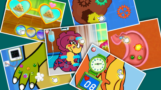 >检查并治疗8个生病的小恐龙,帮助它们恢复健康。 >进行8个不同科室的游戏-外科&急诊、内科、骨科、牙科、耳科&脑科、眼科、体检、病房。每个科室都含有多个精彩的小游戏。 >每完成一个小游戏,孩子都会得到一个小恐龙的印章作为奖励。 >精彩的动画表演和画面,采用物理引擎! 在小小恐龙医生里,孩子会扮演成一个医生,对生病的小恐龙进行检查和治疗。 在体检科,孩子要帮小恐龙测量血压、心律、身高和体重; 在骨科,孩子要给不小心摔断骨头的小恐龙做X光检查,找出断掉的骨头,并把骨头接好,帮小恐龙恢复健康; 在眼科,孩子要帮小恐龙检查视力,测试色盲,佩戴眼镜,治疗红肿的眼睛。 ...... 8个科室都含有很…