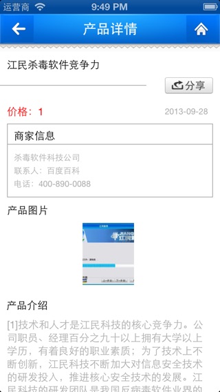 杀毒软件手机平台是国内领先移动互联网手机应用。为您提供精选的行业的产品以及价格,提供最新的新闻资讯、供应商。 同时在线交友,与五湖四海的同行生意伙伴保持密切联系。 只要登陆客户端你就能及时的浏览行业信息,生意快捷又方便。平台为行业企业在瞬息万变的商海中搭建了全新、快捷、稳定的沟通平台。同时,也为企业在移动互联网行业中树立形象,拓展最新的经营渠道,扩大企业对外交流,开展电子商务合作。仪器仪表设备平台热忱欢迎广大商界人士和各界朋友共同创展。 通过该平台您可以: 1.阅读到最新的行业新闻资讯及动态。 2.查看全国行业的产品情况。 3.搜索供应商或产品,并在线及时沟通互动、收藏等。 4.在线交友,与五湖四海的同行业生意伙伴保持密切联系。
