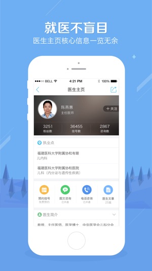 健康之路,亿万中国人一家子一辈子的健康管家! 已开通全国1000多家三甲医院预约挂号、医生咨询服务,是专业的掌上互联网医院综合在线就医服务平台。在这里,你可以: 1、预约挂号:提供全国各大知名医院专家号网络预约挂号服务。不仅能网上预约好医院好医生好大夫,还能享受诊前一日提醒和短信停诊通知等贴心服务。 2、医生咨询:汇聚线下各专科知名专家,好医生在线提供电话、图文等一对一掌上健康咨询服务。无需去医院,亦可轻松问诊。 3、预约体检:与全国各大医院及爱康国宾、美年大健康、慈铭、美亚等专业体检中心合作,提供体检在线预约、体检套餐优惠购买、体检报告查询等服务,体检专家在线咨询、体检宝健康管家等套餐优惠不…