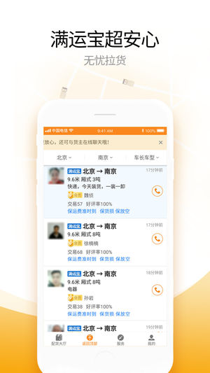 应用简介:海量货源实时更新,找货赚钱争分夺秒。运满满是国内首家基于移动互联网技术开发的手机信息物流配货安全平台。拥有百万货车司机与货主,是一款用于运输物流、寻找一手货源信息、发布物流车源信息的软件,货运界的“滴滴”。为车找货(配货)、为货找车(托运)提供全面的物流信息服务,为百万司机提供更高效更方便的赚钱方式! 【功能亮点】 1、海量覆盖 我们拥有国内百万货主、货源,覆盖百万货车司机! 2、司机专线定制 货车司机订阅线路中可定制常跑线路,并能随时随地知晓该线路的实时货源信息! 3、安全保障 在运满满支付信息费后,若货主违约,运满满将帮司机讨回,维护司机利益。 4、高效配货防空返 运满满可提供放…