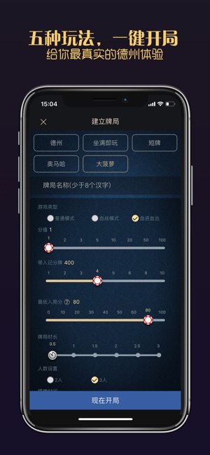 德扑圈, 你的德扑约局神器! 你有自己的德扑圈子,有朋友,有朋友的朋友,你们真心喜欢德州扑克,你们尊重筹码, 你们看不起大厅模式里无厘头All-In,你们喜欢在德扑牌桌上聊天,喜欢手摸筹码围坐一起的感觉,可是大家身处城市各处,繁忙的工作,紧张的生活,甚至恶劣的交通,让线下德扑聚会成为一种奢望! 加入“德扑圈”吧! 找回久违的乐趣 ,朋友间的乐趣 ! 独创的熟人棋牌社交,虽然我们的模式,界面,甚至图标都被各家模仿,但我们更专注于德友间最真实的德扑体验,从开始之初就被资深牌手评为“最真实, 最专注”的德州扑克社交游戏! 【游戏特色】 - 模拟线下真实的保险功能,多人,分池购…