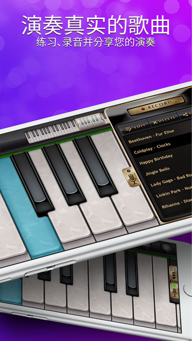 唯一一款拥有免费曲谱音符的钢琴和乐器学习移动应用程序,由专业音乐师为音乐家和初学者设计! 现在就动手下载吧 !去体验怎么在您的手机和平板电脑上免费弹钢琴。 我们有Gismart的钢琴指导课程,还有免费识谱课程,以及爵士,蓝调,古典和流行乐的演奏课程。 我们的数字钢琴移动应用提供各种不同种类乐器的不同音色选择:从大钢琴,早期钢琴,到小提琴,大键琴,手风琴,电子琴,复古钢琴和吉他,应有尽有。您可以自由的敲击旋律,记录下来,然后后期添加节奏和效果。或者根据课程设置,慢慢学习,一步步成为出色的钢琴家。总之,您可以在这款应用上练习认识所有和铉和乐谱。它将会带您成为一名优秀的虚拟钢琴玩家和大师。 ◆◆◆ 此钢琴应用特征 ◆◆◆ ◆ 全88键钢琴键盘 ◆ 8 种不同的钢琴键盘和乐器: 钢琴键盘 早期钢琴键盘 口琴 大键琴 手风琴键盘 电吉他 竖琴 大提琴协奏曲 复古钢琴 ◆ 单双滚动键盘 ◆ 免费钢琴曲子 ◆ 钢琴音符教师 ◆ 钢琴练习模式 ◆ 免费钢琴课程 ◆ 流行和经典钢琴曲 ◆ 记录功能--记录和分享您的成果 ◆ 钢琴应用