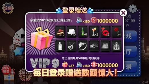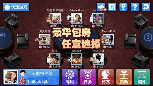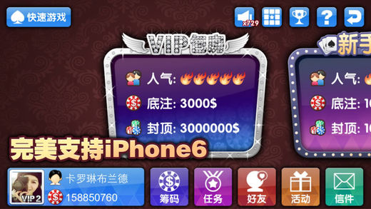 ◆◆◆首款八人对战三张牌◆◆◆ 全民大富豪十大亮点: 1、八人激情对战,一分钟成为百万富翁! 2、免费畅玩,无需注册,登录就送! 3、完美支持iPhone7 Plus,全高清游戏画质。 4、一键快速游戏,游戏畅快淋漓! 5、刺激有趣的游戏任务,做任务免费得筹码。 6、独特的送礼功能,和您的牌友礼尚往来。 7、丰富的成就系统,看您是否能成为赌神! 8、内置好友功能,随时邀请朋友一同畅玩。 9、精彩活动天天有,礼品筹码送不停。 10、免费领取救济金,每日游戏有保障。 欢迎进入《全民大富豪》的游戏世界! 如果您喜欢这款游戏,欢迎随时给我们留言及评价。我们期待听到您好的意见和建议。