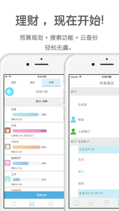 〈记账日记 PRO〉 是一个先进且易用的行动记账本. 前所未有的简单, 记账本就在您的口袋, 随身带着走! 精致介面风格, 支持多帐户与外币汇率管理, 云备份功能, APP密码保护(支持Touch ID解锁). 原来,记账也可以很简单 乾净的版面设计, 没有复杂繁复的操作方式 记账也可以是一个赏心悦目的旅程 【特色】 * 透过通知中心快速记账 * 支持自定日期区间统计功能 支持自订多组不同的日期区间,统计该区间内的收支情况。 (使用情境范例: 即时统计每个月6日到次月5日之间的收入支出。) 【专业级的记账功能】 以趋势图表显示记帐收支状况. 更提供支援帐目搜寻, 帐目闹钟提醒, 多国货币, 多重帐户管理. App密码保护, 以及云备份功能. * 多帐户管理 您可新增与管理多个帐户,记帐帐目简单「清楚明瞭」。 * 多国货币与汇率 您可为每个帐户设定「币別」与「汇率」,外币帐户记帐轻而易举。 * 可设定周期性记帐项目 如果您有每天或固定周期的花费,您可以设定重复性的记帐项目,大大减少每次输入的时间。 * 图形化呈现 透过趋势图与分类圆饼图,清楚观察每周,月,年的花费情况。 * 精致的分类 可以自订主分类与子分类,并提供直觉化的操作介面。 * 支持闹钟提醒 记账时可同时设定「闹钟提醒」,不再忘记未来的缴费或收支项目。 * 相机滤镜 拍照记账支援即时相机滤镜,让记账的生活更多采多姿。 * 支持打卡标示地点 记账时可以顺便打卡,并且可储存打卡记录,方便之后快速重复使用。 * 密码锁 支援密码保护与Touch ID解锁(iOS 8以上),可以设定开启App前的密码锁,您的记账本安全有保障。 * 支持iCloud, Dropbox, GoogleDrive等备份管道 * 支持汇出成CSV/PDF档 支援汇出记帐资料,并可以自行设定汇出时间范围。让您可以自行在Excel中浏览与分析。