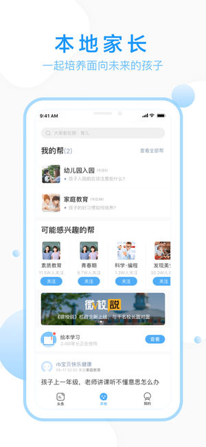 在中国,每30个家庭里就有一个家庭在使用家长帮App。家长帮致力于提供家庭教育一站式服务,帮您快速了解孩子在小升初、幼升小、中高考不同阶段的问题。你所困惑的孩子成长难题,这里都有答案。望子成龙,不如马上行动!让我们一起加油,培养面向未来的孩子吧! 【产品特色】 1、与本地家长在线互动 无论您是幼升小,小升初,中考亦或是高考的学生家长, 家长帮都能找到与你同城、同校、同学段的家长,一起培养面向未来的孩子! 2、向上千位教育名师提问 这里有经过十年积累出的社区专家的内容精华,涵盖了幼升小、小升初、中考与高考各个阶段; 同时还有全国各地区重点小学/中学/高中的攻略; 背靠学而思网校名师资源,有…
