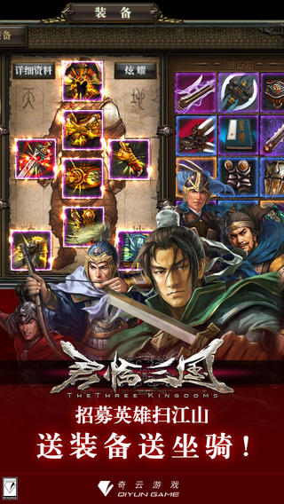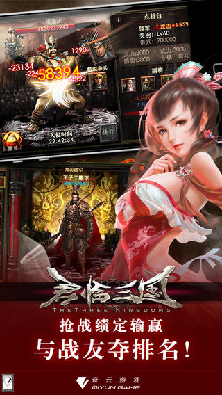 * 全球1000万玩家赞不绝口的策略游戏! * 不要再为寻找一款好玩的策略游戏发愁了,这款足以满足您所有需求! * 现在开始,立刻下载游戏的玩家都有额外元宝赠送! ***创造上线三天冲入top10的完美成绩*** ***1000万玩家评选的SLG策略类最佳游戏*** ***年度实力品质大作走过路过别错过*** === 游戏介绍 === - 《君临三国》《君临三国 HD》以中国历史上著名的三国时代为背景,进行创造改编烽烟四起,战火纷飞。《君临三国》带您重回英雄辈出的三国时代,在这里您将用后属于您自己的三国城池,君临天下。在这里《君临三国》给您带来最真实的 三国武将,浴血沙场。游戏里高帅富与白富美的完美配合成为了同生共死的战友。英雄辈出美女如云的年代,试问谁将在《君临三国》里一统天下! === 玩家点评 === - 真实玩家好评,一切无需解释,《君临三国》值得您拥有! === 游戏特点 === - 史诗级的战斗场景 年度三国策略类大作,最华丽最史诗级的战斗画面!策略爱好者的聚集地!没有最强的兵种,只有最强的玩家,那个人就是你吗? - 真实的三国武将,玩爆三国 多达179位三国时代武将,详尽的武将生平简介。关羽、张飞、赵云等,尽归你手,组建出自己的三国王朝,一统江湖! - 超丰富的游戏内容 神秘的探险让您爽到爆,只需每天轻松点一点,就能获得神秘宝箱,挑战三国时代强力BOSS! - 最恢弘的战争 独创的即时战斗系统,及时面对敌人千军万马,也能从容应对! - 系统赠送礼物超值给力,免费三国玩家的福音 作为屌丝的我真的被游戏的老板所感动了,每天都赠送元宝,有没有,外加每天凌晨还有免费摇奖机会。 - 高品质画面+小清新音乐 历史感强,建筑古典雅致,三国武将形象细致入微。连一枚铜板都刻画的无比到位 - 最丰富的策略 是以战养战安居乐业,还是如狼似虎见谁灭谁?都可以让您立足《君临三国》 === 交流反馈 === - 客服QQ: 511113579 - 客服邮箱: support@qiyun.com
