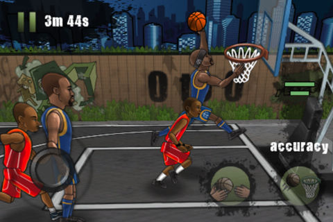 Streetball.com presents the best basketball game in the App Store! The all new Streetball release features new game play and street ball players like Kenny Serious Sattelite Satterfield, Jay Boogie Brantley and top basketball prep and point guard Jerron Love. Play Streetball and tap to pass, shoot, steal, block, and dunk your way to world domination! ========================== ***FEATURES*** - Fourteen basketball and streetball players with different stats and strengths, with new characters appearing in new updates. - Local co-op and competitive multiplayer for OS 3.0 and up. - Four game modes ranging from a 5-minute Two on Two game to a more casual turn-based H.O.R.S.E. - High Scores challenge how good you are on the court! - Unique character animations and visuals. ***About the Game*** Streetball has a quick on-court tutorial helping users to learn the game. Once they are ready to play, users can choose from three game play modes including Two-on-Two, First to 21, and H.O.R.S.E, all available with local multiplayer. Users move around with a directional pad and tap buttons to pass or shoot. When shooting, an accuracy meter pops up for users to hold and then release the button at the right moment to sink the shot. Users can compete in the multiplayer mode using Bluetooth or WiFi. In the game of H.O.R.S.E., users match shots with the computer by tracing shapes with a finger in order to duplicate the opponent's last shot. Be sure to download our Streetball Official app and watch basketball instructional videos and more.