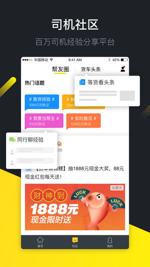 【内容提要】 千万货源任你选,拉货安心有保障。 货车帮是一款针对公路物流行业从业人员定制开发的集专业配货、ETC、加油、货车买卖等的综合物流服务软件,是千万司机信赖的找货拉货、货源速配的货运服务平台。 -----功能亮点----- √注册、配货简单便捷 √注册即送超值新人豪礼 √海量货源智能匹配,好货自已找上门 √优质货源一键订阅,实时语音提示 √放空赔付无需担心空返,卸货立马拿运费 √ETC享超值优惠,拉货省钱又安心 √随时随地无忧加油,品质好油8折起 √买车上货车帮,总比市价低五千 √丰富车后服务为你保驾护航(停车场、汽配汽修、高速救援等) √支持搜索多目的地,高效配货 √在线违章查询,…