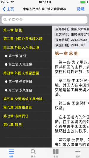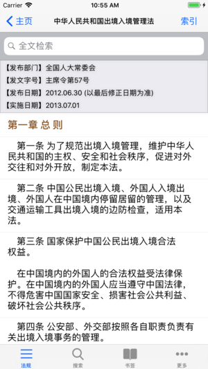 收录300多部常用中华人民共和国法律法规及司法解释等,分类浏览,便捷操作,快速索引定位,全文搜索,书签收藏! 软件特色: 1. 法律法规详细分类,一键查找 2. 全文检索,标题与章节检索 3. 快速索引定位 4. 升级功能后可一键复制相关条款,并发送给指定邮箱 适合法律专业者随身查找使用,比如律师,法律学者,法律专业学生,公务员考试等. 法律大类一览: 国际法、行政及行政诉讼、经济法、民法、民事诉讼及仲裁、商法、司法制度及法职、宪法、刑法、刑事诉讼等.