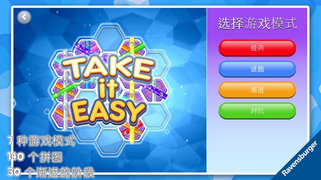 它是一种谜题、脑筋急转弯和游戏!它兼具但又超越这三种性质!它是有一种策略的宾戈游戏! 游戏会将所有片段同时放在板上。如果从一边到另一边能够形成相同颜色且连续的行,您即可得分。但是若有一个砖块错误,则整行均无效。随着板上空白区域(可能的选择)逐渐减少,游戏越来越难。因为一旦放好砖块之后,无法再次移动该砖块。 Take It Easy简单易玩,但却意外地令人着迷、发人深省,能够为您带来无穷乐趣。 特征: • 三种好玩且美观的游戏模式: - 经典模式:转向游戏的初始设计模式。 - 谜题模式:140个好玩、精心设计的谜题,测试您的谜题解决能力。这种模式十分令人着迷,您甚至会将谜题带到睡梦中! -…