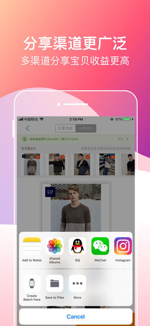 淘宝联盟APP是阿里巴巴旗下产品,你可以通过分享商品随时随地赚钱。只需要通过自己的渠道把商品分享出去,别人购买了就有佣金拿,成交越多,收入越多。不用囤货,不用自己发货,0成本,0风险。 有月入几千的新手,也有月入百万的大牛,淘宝联盟APP是学生党,上班族,家庭主妇,自由职业者等赚钱首选 一句话介绍:随时随地,推广赚钱