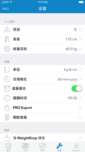 WeightDrop 是一款简单且适合所有增肥和减肥人士的体重记录工具。专为需要每天记录体重数据的人而设计。WeightDrop 具备所有可以帮助你控制体重、达成目标的重要功能。 *** 知道吗?根据医学研究证明,使用体重记录 App 的人群多数情况下可以更快地达到他们的体重目标,而且可以长期保持体重。试试就知道!*** 功能特性: - 智能 App 设置:第一次使用时,App 会为你演示所有重要设置 - 超酷概览:所有体重信息和进度一览无遗 - 简单快速添加体重数据:每天记录一次,简单快捷 - 体重历史:查询任意日期的体重记录,随时更改你的输入 - 完美体重计算工具:App 会根据你提…