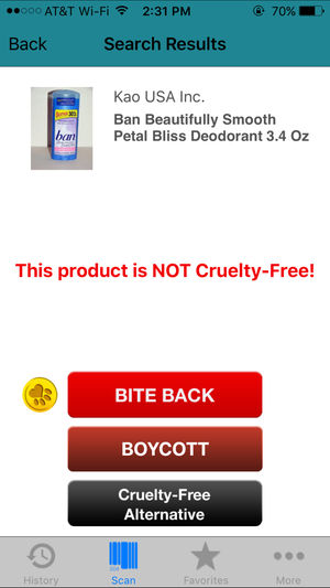 Cruelty-Cutter is cruelty-free shopping made simple! Cast-away any doubts when purchasing items by using this app to scan an item and have an immediate response about it’s animal-testing status. Cruelty-Cutter has every company in the "Leaping Bunny" and PETA lists and thousands more. It is the mo…