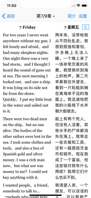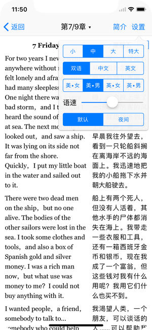 1、几百本经典英文名著; 2、中英文双语对照阅读; 3、点击英文段落开始朗读,高质量语音,可选男声、女声、英音、美音,可调节语速,支持离线发音,无需流量; 4、长按查询单词; 5、可选择双语对照或中文、英文三种阅读方式。 ==【书虫初级】== 《一个国王的爱情故事》《世界上最冷的地方》《五个孩子和沙精》《亡灵岛》《哈克贝利·费恩历险记》《在月亮下面》《威廉·莎士比亚》《格林·盖布尔斯来的安妮》《歌剧院的幽灵》《潘德尔的巫师》《爱丽丝漫游奇境记》《爱情与金钱》《猴爪》《苏格兰玛丽女王》《象人》《鲁滨逊漂流记》 ==【书虫中级】== 《三十九级台阶》《三怪客泛舟记》《不平静的坟墓…