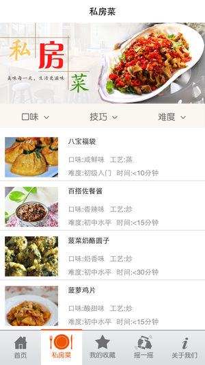 顾名思义,私房菜是私人的菜、私家的菜。就是在别人家里吃到的由主人做的拿手好菜。私房菜通常对外无店面招牌,无固定菜单,不设专职服务员,但这些菜的烹调技法往往是祖传的,有独特风味,而且限量供应,在市面餐馆无法吃到。据说这种菜馆多源于古时的深宅大院,位置比较偏僻,各具特色,并且相对低调。 不知何时开始,人们对酒楼食肆的喧嚣变得有些厌倦了,热爱美食者钻进横街窄巷,寻找美味佳肴,还有那份流失已久的恬淡心情…… 我们搜罗了各种美味易学的私房菜,赶紧行动起来吧,新年一天一款新菜式,绝对惊爆全场!