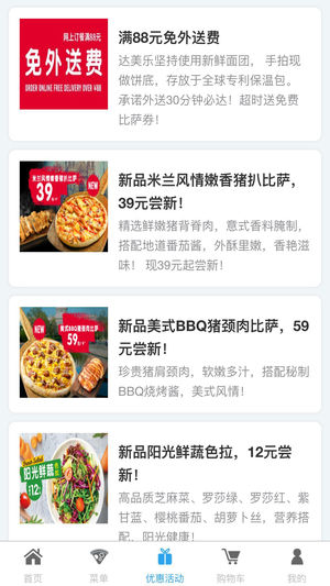 达美乐比萨,源自美国的全球知名比萨外送品牌 这里有最好吃的比萨和丰富的各类小食。 比萨使用纯手工制作的饼底面团,更有韧性,口感更佳! 芝士和比萨酱汁100%来自美国进口,以保证比萨能呈现达美乐全球统一优良品质和口味。 我们只选用品质优良的肉制品和新鲜的蔬菜原料来制作比萨 意大利面,焗饭类,小吃类,鸡翅类,甜点类,丰富的符合中国消费者口味和习惯的小食应有尽有。 达美乐领先美食潮流,各款新品层出不穷。 更多惊喜,尽在达美乐比萨APP