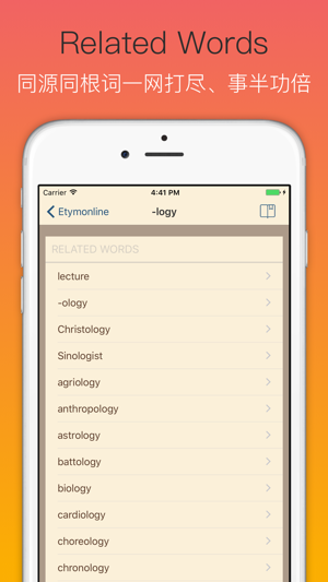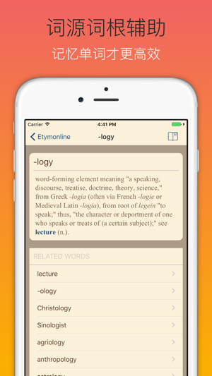 世界上最好的英语词源词典,英文版的《说文解字》。这是一本与众不同的英英词典,对英语词汇进行百科全书式的梳理,告诉你英语单词每个意思的来源、历史年代。通过讲述单词背后的故事来帮助你梳理词与词的关系,形成词汇网络,在理解的基础上形成牢固记忆,这才是高效记单词最轻松、最符合逻辑的方法。每一个想提高自己英语水平的人都应该拥这个词典 app,背单词的最佳伴侣。 • 源于知名词源网站:www.etymonline.com • 内置 45387 个常用英语单词历史简明阐释 • 覆盖大学英语四级、六级、考研、雅思、托福、GRE 等考试全部词汇 • 离线使用,节省流量,无需联网即可使用 • Bookmark…