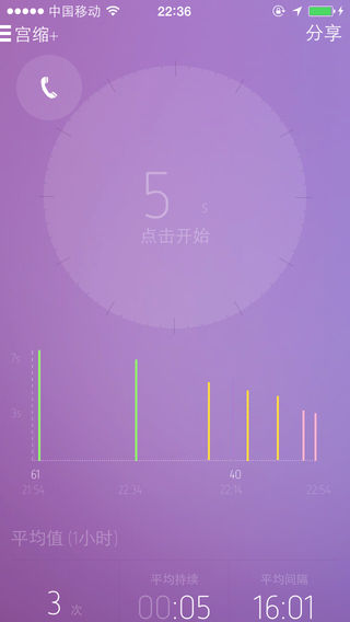 宫缩+采用智能识别为您提供便捷的宫缩记录功能,在艰难的阵痛时刻给您最科学体贴的支持。只需要轻轻一点即可记录宫缩,根据记录结果生成简洁明了的图表,一旦触发临盆征兆即会直观提醒。非常适合在孕期最后三个月使用,方便您对阵痛情况进行追踪,区分假宫缩及真正的临盆征兆。 宫缩+ 陪您一起迎接您的小天使来到这个世界。 宫缩+ 功能清单: * 必要信息一屏显示 * 额外的颜色状态提醒 * 全新设计的图表,更清晰的解读数据 * 保持屏幕常亮 * 分享至微博、微信、朋友圈、QQ、豆瓣、Facebook、Twitter等 * 无后台服务,省电省资源 * 即使被退出也能从容恢复 * 设置紧急联系电话 * 还有爱! 有任何问题(包括生孩纸相关皆可)请在 App 左上角菜单中留言,我会马上回复你 恭喜恭喜~ 感谢设计师:奶爸卡神 感谢交互设计师:小花