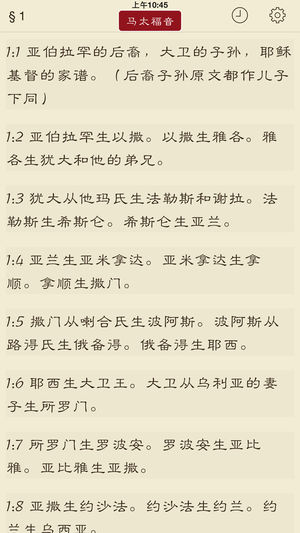 Eat Bible, let god's words feed us! ●支持 Apple Watch ●横屏的时候可同时打开两本圣经,方便比较阅读。 ●可以统计自己读圣经的时间,统计曲线清晰明了。 ●可以添加到通知中心的“今天”里。 ●可搜索经文,通过摇一摇或“今天”控件的搜索按钮进入搜索页面 新约: 马太福音 马可福音 路加福音 约翰福音 使徒行传 罗马书 哥林多前书 哥林多后书 加拉太书 以弗所书 腓立比书 歌罗西书 帖撒罗尼迦前书 帖撒罗尼迦后书 提摩太前书 提摩太后书 提多书 腓利门书 希伯来书 雅各书 彼得前书 彼得后书 约翰一书 约翰二书 约翰三书 犹大书 启示录 旧约: 创…