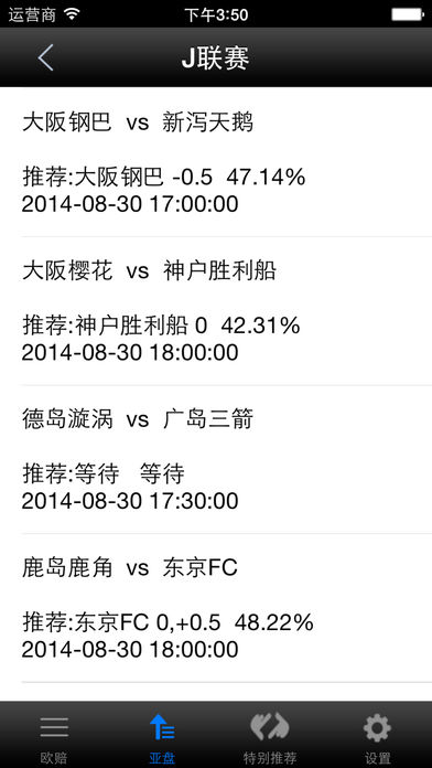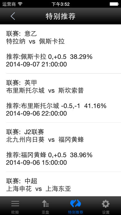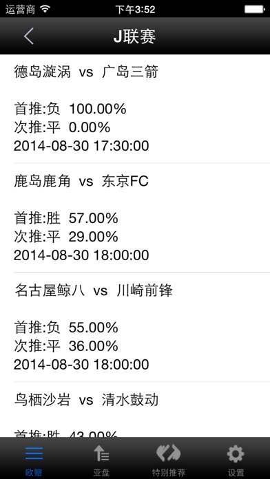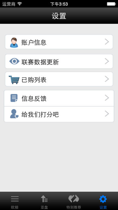 ----------Start 题外话 1,当足彩预测App被疯狗追咬、被瞎编、诬陷时,那就说明足彩预测App已经影响很大了。至少从某种意义上来说,能让竞争对手变成疯狗一直追咬也是一种能力,因为竞争对手越来越害怕用户使用我们的产品,越来越害怕大家下载我们的产品。 能让竞争对手害怕,对于我们来说,这就足够了。 2,请大家使用免费模块感知下我们的产品,而不是受竞争对手的恶意评价影响。 3,“专业评分师”经常找到我们,提供:好评的价格是2元/条,问我们是否购买。我们都毫不犹豫的拒绝了:虽然评分下面一片好评(好准、好牛)很好看、很高大上。但那不是我们想要的。玩弄虚假不在我们的范畴内。 敬告那些像小丑一样的竞争对手,有这个恶心人的时间,就去好好搞搞你们自己的软件吧。处在阴暗的角落,注定黑单一生,霉运一生的。 4,欧赔模块中有一个联赛(英超)免费供大家使用。 5,数据会在比赛当天更新,具体更新时间由服务器自动更新,未有最新比赛的,只能显示上一次的状态。 6,购买特别模块的,请先看下这篇文章,再决定购买。 特别模块通常是23:30左右更新,最迟不超过23:50分。 特别模块的说明:http://blog.sina.com.cn/s/blog_c4fdd80d0102uymq.html ----------end 足彩预测是一款由对足球比赛的欧赔、亚盘赔率综合基础上进行分析而提供倾向性比赛结果的App. 我们拥有庞大的数据(超过5000万条)及其特殊的算法,为您在足球比赛的赛果方面给与专业性的建议方向。 足彩预测App主要包括欧赔、亚盘、特别推荐三个模块。 其中欧赔模块中有一个联赛(英超)免费使用。 提供预测结果的联赛有: 欧洲:英超、英冠、英甲,西甲、西乙,德甲、德乙,意甲、意乙,法甲、法乙,荷甲、荷乙,葡超、葡甲,瑞典超,瑞士超,希腊超,土超,挪超,捷甲,俄超,丹超,波甲,爱尔兰超 亚洲:日职联、日职乙,中超 主要特点: - 独特的特殊算法基于大量数据进而预测最有可能的结果。 - 庞大的数据量,超过2500000历史性的比赛进行深入分析的基础上。 - 易于使用,只需触摸球队的名字。 - 对特别场次的比赛进行推送通知 使用方法: 欧赔模块:请大家务必关注首推、次推各自所占的比例,然后评估后去买上盘还是下盘,而不是关注类似首推胜次推平这样的结果,请务必关注各自所占的比例。 下面有篇文章,虽然是针对PC版本的欧赔讲解的,但是对于App的欧赔模块还是有一定的借鉴意义的,请借鉴阅读下:http://blog.sina.com.cn/s/blog_c4fdd80d0102vhq7.html ------------------------------------------------ 免责声明: 足彩预测App仅为您感兴趣的比赛结果提供一个专业性的建议方向,但不能保证在任何时候所提供的数据均正确、及时;对用户使用本App所提供的数据而作出的决定或采取的行动不承担任何责任。 用户使用本App所提供的数据,均不得进行与当地国家法律、法规相违背的行为。 更多、最新信息或者通知都会在博客中发布:http://blog.sina.com.cn/u/3304970253 或者请到官网 蓝麻雀了解:www.lanmaque.com 或者有进一步的疑问,请联系微信:2910603049或QQ:2910603049 或者Email:2910603049@qq.com